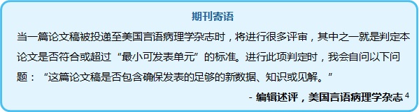 如果原始数据集非常大(如:基于人群的研究)以及在数据集的收集和分析需耗费数年的情况下,作者具有正当充足的理由在多篇论文中报告自己的研究。6,8 但是,每篇论文都应论述独特而且重要的问题。8如果研究围绕单个假设展开和设计,则研究结果应在同一篇论文里向读者展示,与数据集的大小无关。4