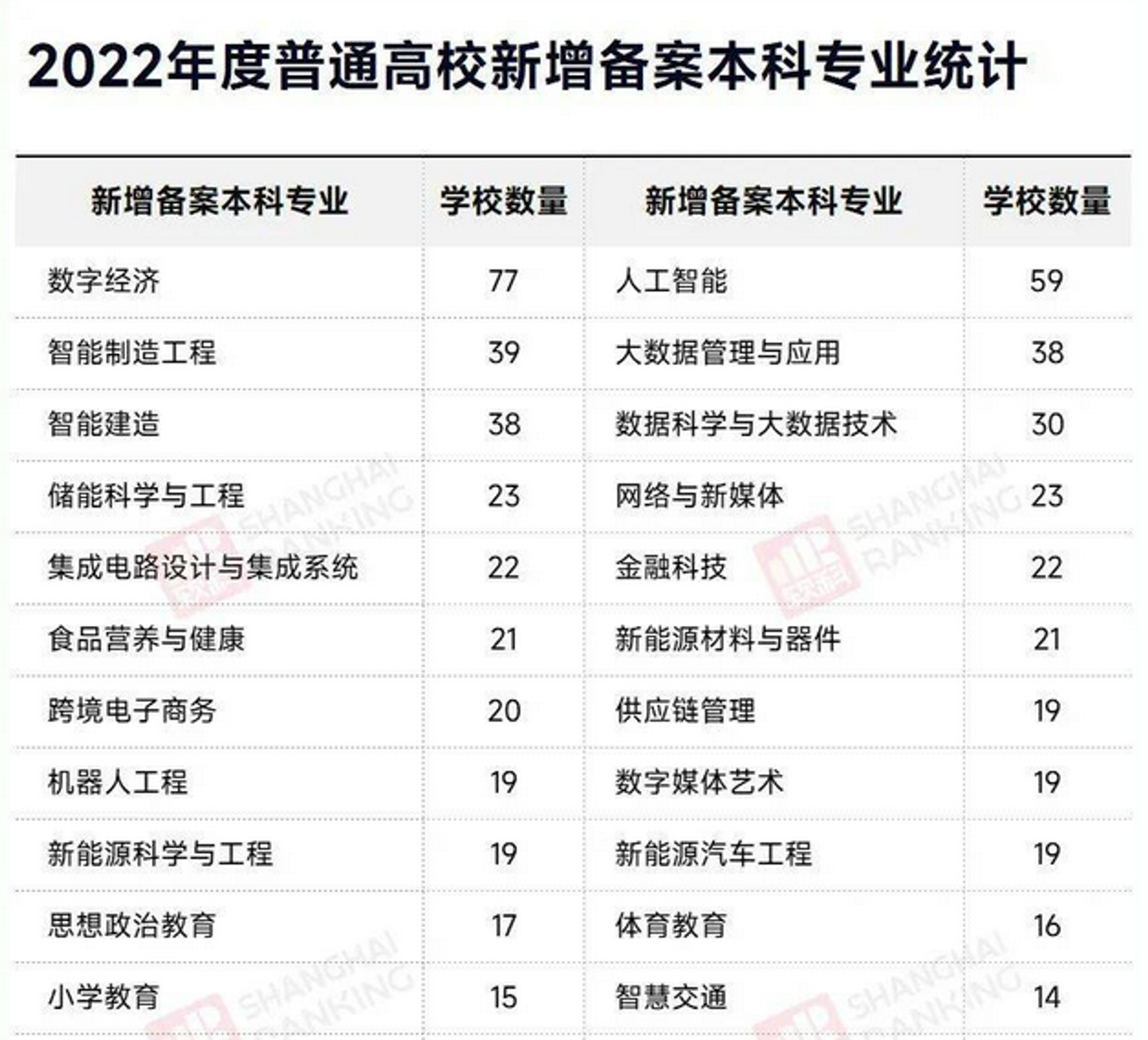 你看新增专业的前三甲——数字经济、人工智能、智能制造。你光是听名字就知道,这几个方向不仅是当今市场的大风口,而且是国家鼓励和发展的重要方向。所以这些专业方向应运而生,增加招生人数势不可挡。