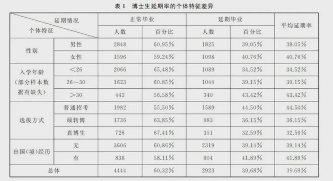 换句话说,平均每5个博士生里面,就有2个延毕。相比较于本科和硕士生超过90%的正常毕业率,博士生的延毕率不可谓不高!
