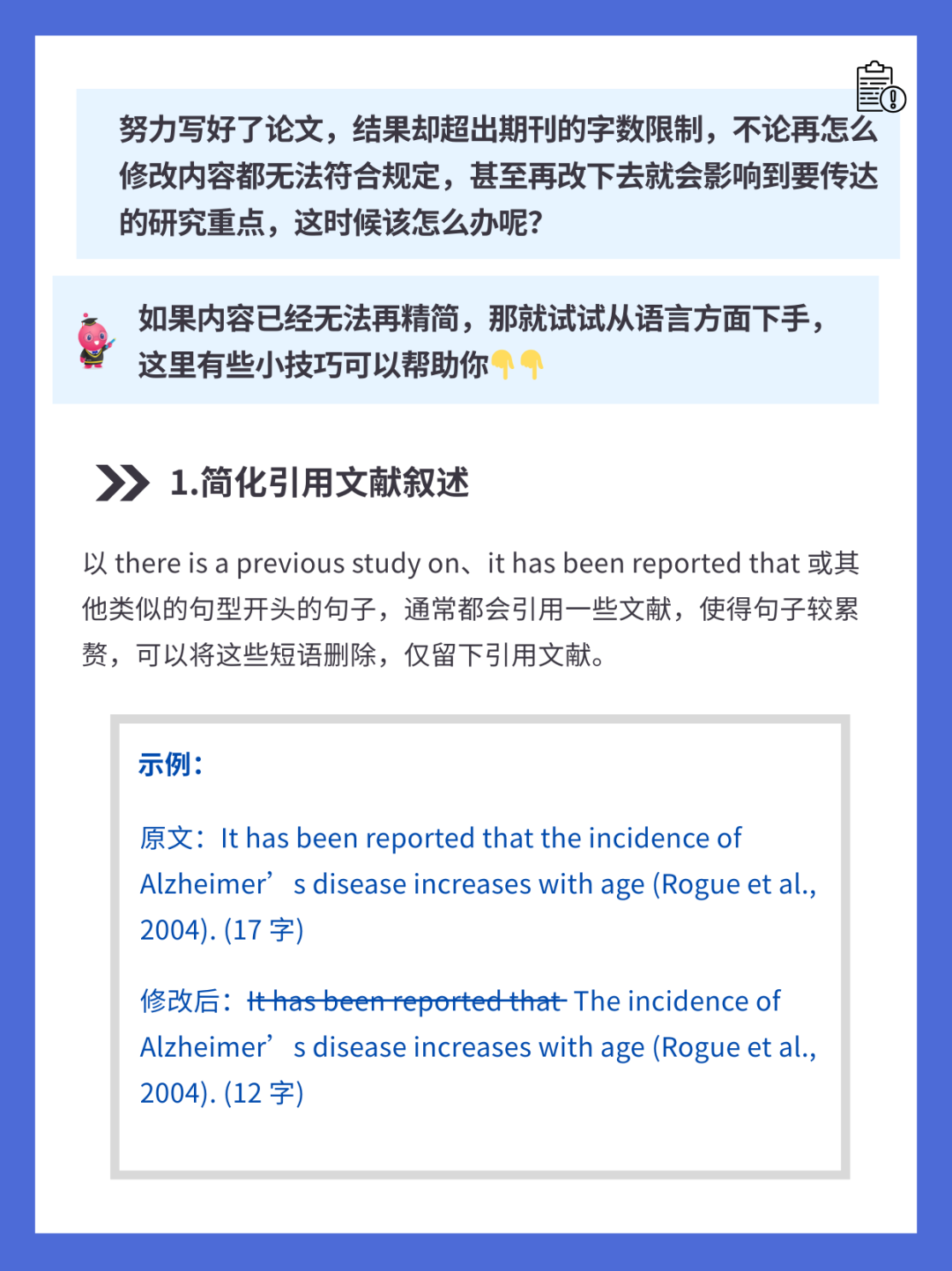 相信很多同学在论文写作的过程中,都遇到过相似的问题,今天小e在这里分享10点技巧,帮助大家控制篇幅。如果你的内容已经无法再精简,那就试试从语言方面下手吧👇👇