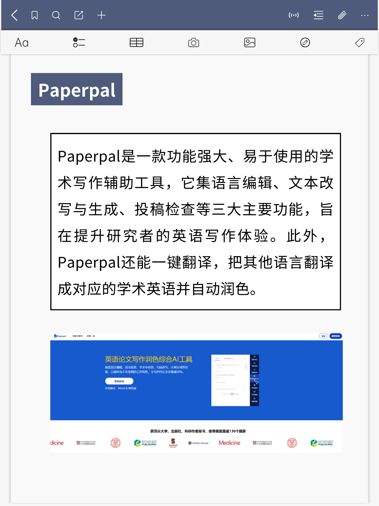 ✅Paperpal:是一款功能强大、易于使用的学术写作辅助工具,它集语言编辑、文本改写与生成、投稿检查等三大主要功能,旨在提升研究者的英语写作体验。此外,Paperpal还能一键翻译,把其他语言翻译成对应的学术英语并自动润色。
