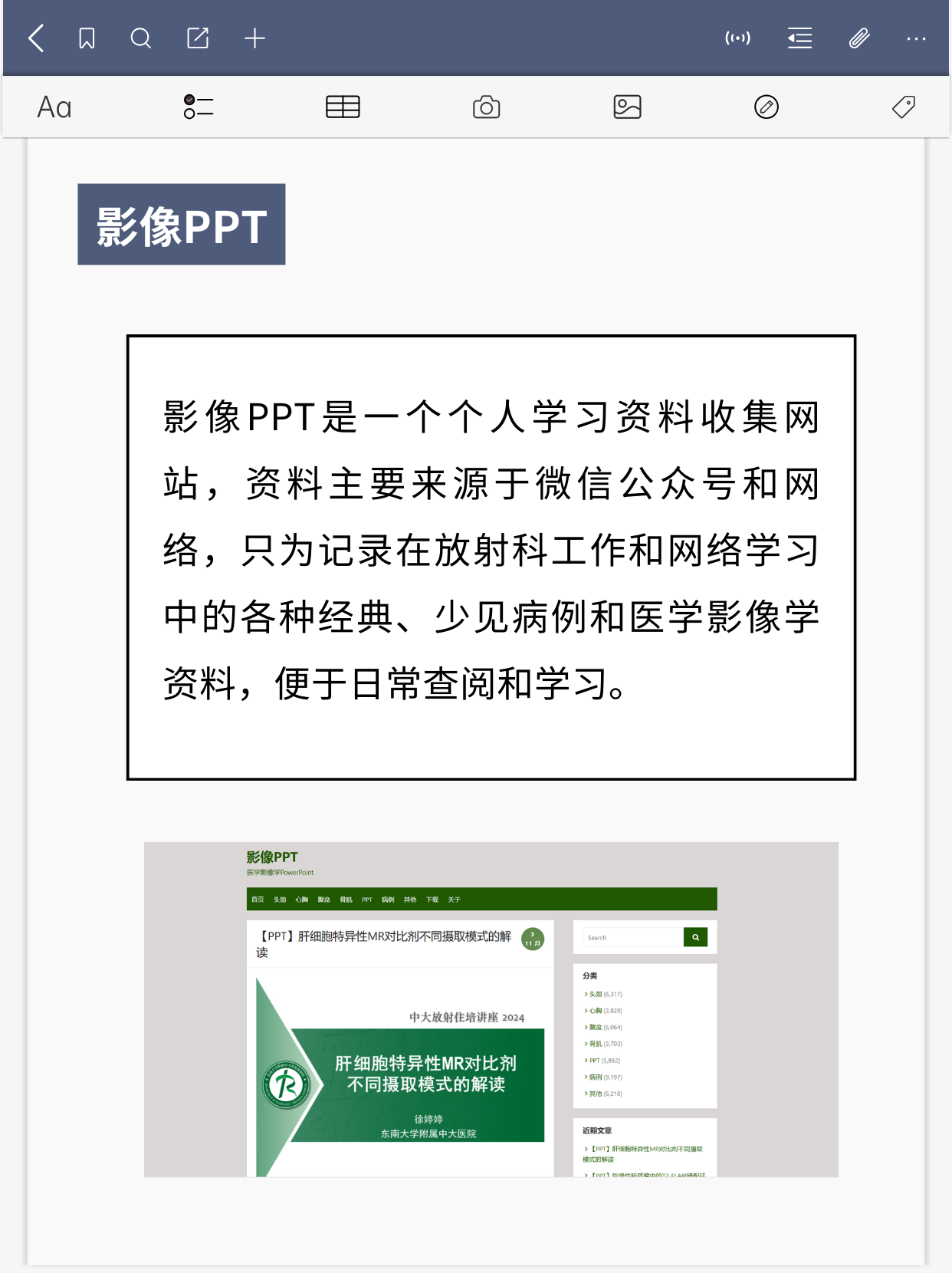 ✅影像PPT:是一个个人学习资料收集网站,资料主要来源于微信公众号和网络,只为记录在放射科工作和网络学习中的各种经典、少见病例和医学影像学资料,便于日常查阅和学习。