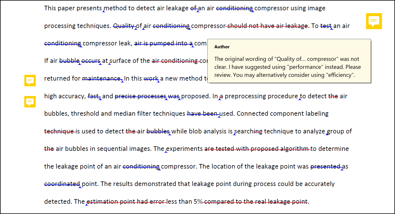 标准润色服务, 编辑可在PDF版本上服务。但是在优质润色服务下, 意得辑不接受PDF版本,因为编辑无法在PDF版本上对您的稿件进行结构重组。意得辑使用Adobe Acrobat Reader DC 或 PDF Annotator 来编辑PDF文档。请注意,由于PDF编辑需要比较额外的工作程序, 交件时间会比WORD文档长一些。工作完成文件会包含编辑的修改及建议。您需要按照建议进行必要的修改及整合。